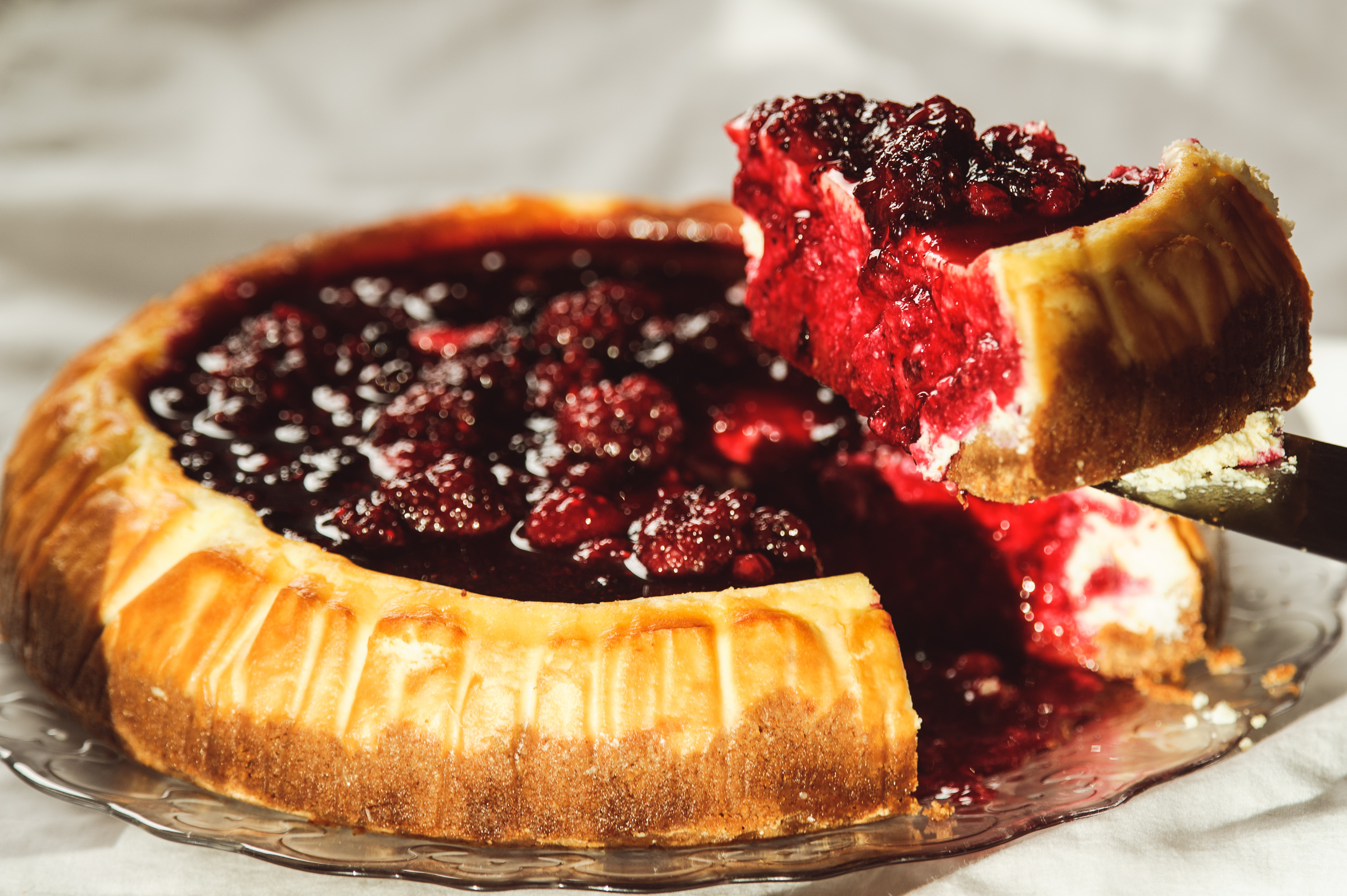 a sweet dish consisting of two or more layers. The main, or thickest layer, consists of a mixture of soft, fresh cheese, eggs, and sugar; the bottom layer is often a crust or base made from crushed cookies, graham crackers, pastry, or sponge cake. It may be baked or unbaked (usually refrigerated). Cheesecake is usually sweetened with sugar and may be flavored or topped with fruit, whipped cream, nuts, fruit sauce, and/or chocolate syrup. Cheesecake can be prepared in many flavors, such as; strawberry, pumpkin, key lime, chestnut, or toffee. An ancient form of cheesecake may have been a popular dish in ancient Greece even prior to Romans' adoption of it with the conquest of Greece. The earliest attested mention of a cheesecake is by the Greek physician Aegimus, who wrote a book on the art of making cheesecakes.